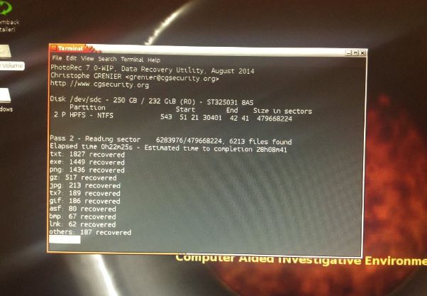 En este caso, ya que estamos trabajando con C.A.IN.E vamos a utilizar la herramienta PhotoRec que viene incorporada en el Live-CD (En otro post realizaremos la misma tarea con la herramienta Scalpel). PhotoRec permite recuperar archivos perdidos tanto desde un disco duro como desde un archivo imagen del disco.