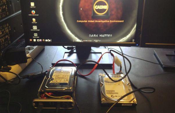 | Conectando los dos discos para el clonado |